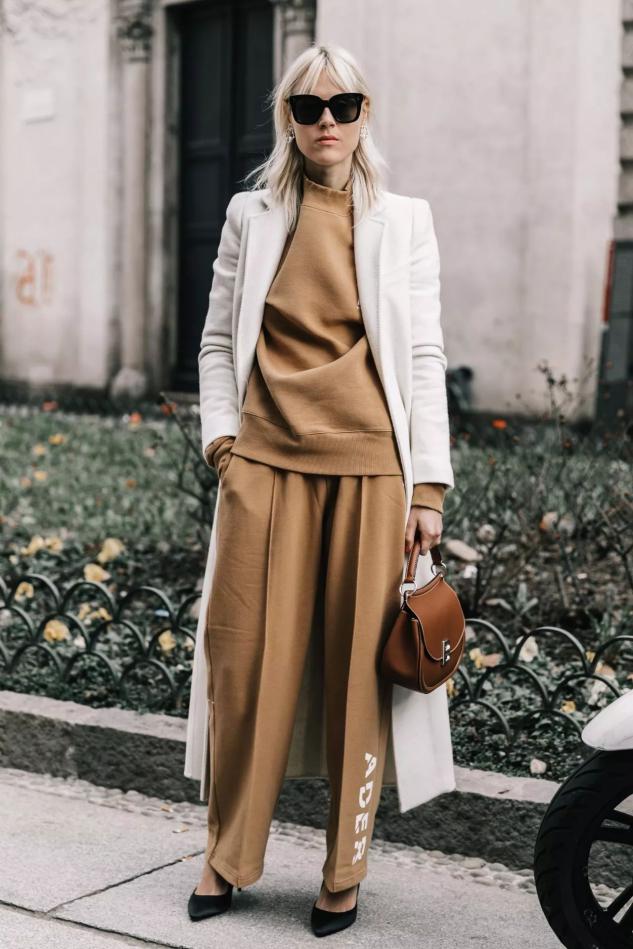 砂岩褐最常见的就是作为大衣出现,给人的感觉就是朴质高级。秋冬季节最为的百搭实穿,搭配浅色系高级优雅,砂岩褐虽说颜色会比较的偏暖色调,但是好在它颜色饱和度并没有特别的高,所以砂岩褐它对于肤色的接受度也会相对而言更高一些,即使是黄黑皮则可以轻松Hold住。